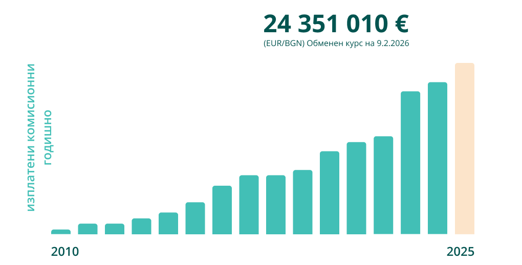 Средно комисионни, изплатени всеки месец